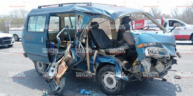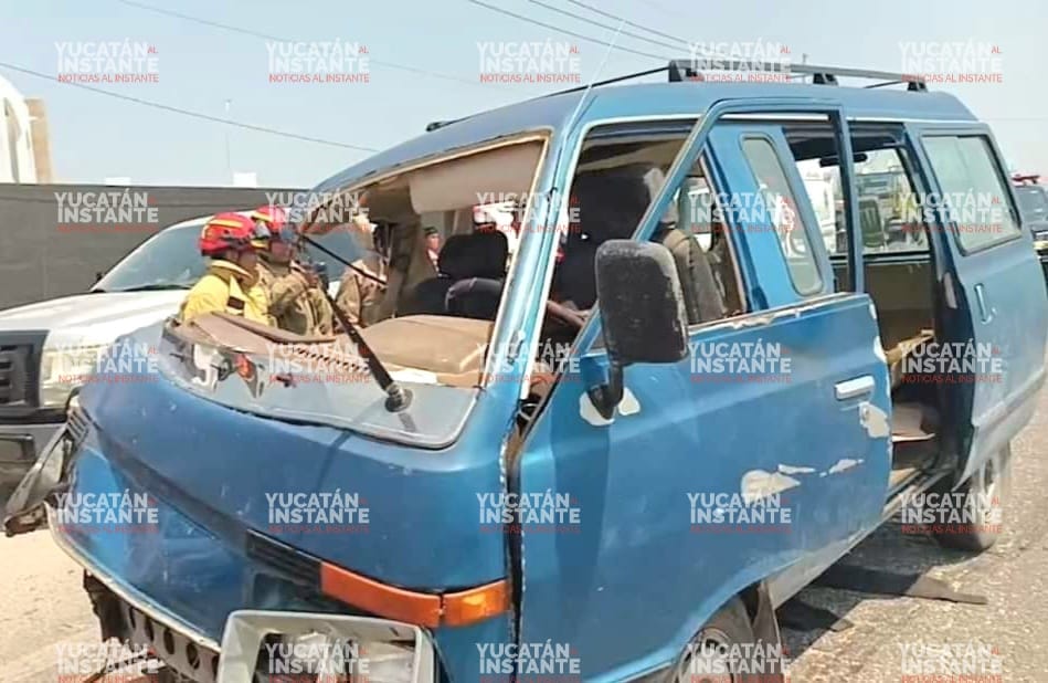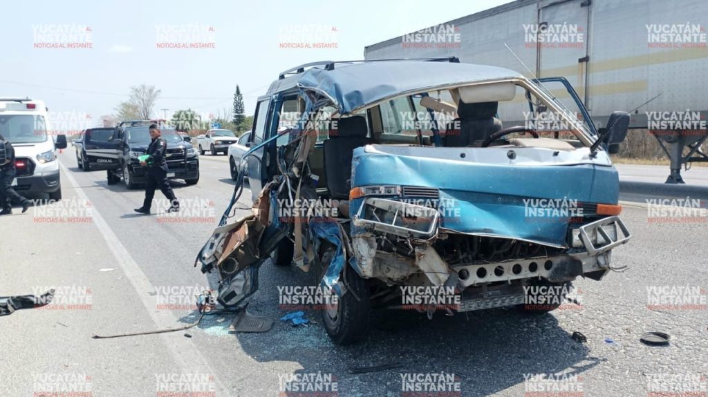 Según los hechos el chofer de la Van, circulaba con dirección hacia Mérida, y delante de él, circulaba un volquete, según el guiador, intento rebasar la pesada unidad, pero al hacerlo calculó mal la distancia y terminó por colisionar contra la parte traseta del camión de volteo.
