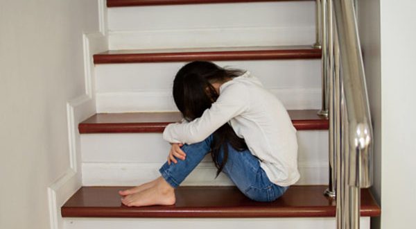 La señora mantiene a la niña en el suelo mientras llama por teléfono al padre de la joven.