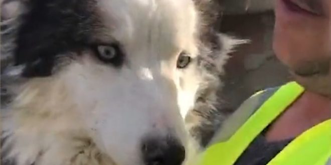 Posteriormente aparecen los rescatistas abrazando al perro, quien se ve alerta y con buena salud mientras bebe agua.
