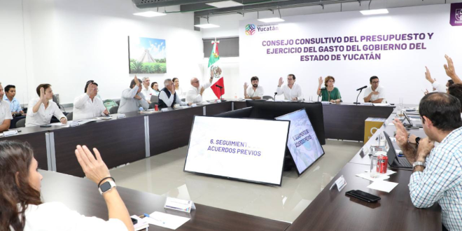 Mérida, Yucatán, 24 de noviembre de 2023.- El Consejo Consultivo del Presupuesto y Ejercicio del Gasto de Yucatán, conformado en su mayoría por ciudadanos miembros de cámaras empresariales, integrantes de la academia, colegios de profesionales, expertos en administración y finanzas, así como representantes de la sociedad civil, analizó y aprobó por unanimidad el paquete económico del Gobierno del Estado para el ejercicio 2024, que el Gobernador Mauricio Vila Dosal enviará al Congreso local próximamente.