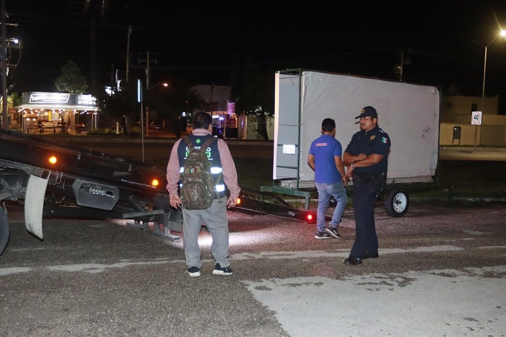 En un segundo operativo efectuado sobre la Avenida 24 del Fraccionamiento Santa Gertrudis Copó, a la altura de la plaza comercial “La Isla”, fueron retiradas dos unidades móviles de venta de alimentos tipo “foodtruck”, dedicadas a la venta de tortas y tacos. Ninguna de las unidades contaba con permiso de operación ni placas de identificación, situación que representaba un riesgo tanto para los transeúntes como para los propios consumidores.