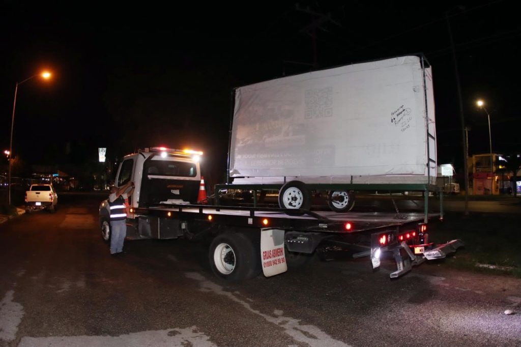 El primer dispositivo se realizó en la calle 7 del Fraccionamiento Paraíso Maya, donde el personal municipal retiró vallas publicitarias que operaba sin autorización, así como dos camionetas abandonadas —una Dodge Voyager y una Dodge Ram 400— que, de acuerdo con reportes vecinales, generaban condiciones insalubres, inseguridad y la presencia de fauna nociva.