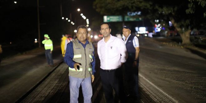 Mérida, Yucatán, 21 de octubre de 2022.- Avanza a buen ritmo la tercera etapa de repavimentación de 4.7 kilómetros más críticos del Anillo Periférico de Mérida, con los cuales suman más de 28 kilómetros intervenidos por el Gobierno del Estado a través de un esfuerzo de más de 111.5 millones de pesos, cuyos trabajos supervisó la noche del jueves el Gobernador Mauricio Vila Dosal para ofrecer una vialidad más segura, eficiente y de calidad en beneficio de los yucatecos.