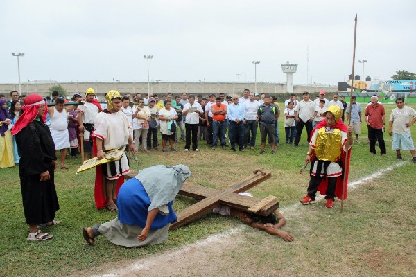 Durante la hora que duró el recorrido por los módulos y jardines, quienes estuvieron ahí congregados siguieron el camino que Jesús trazó hasta llegar al Gólgota, mientras observaban los latigazos que recibía el privado de su libertad F.C.A, de identidad reservada, quien en esta ocasión interpretó el papel del nazareno.
