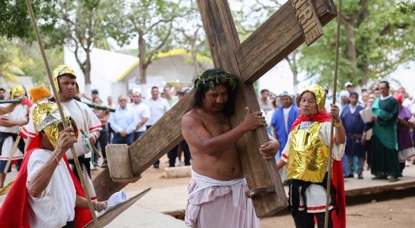 Mérida, Yucatán, 19 de abril de 2019. – Con la participación de la comunidad penitenciaria, este día se realizó la escenificación del viacrucis en el Centro de Reinserción Social de Mérida (Cereso), en el que se dieron cita más de 400 personas entre pastoralistas, reclusos y sus familias, así como las autoridades de esta institución, presidida por Francisco Javier Brito Herrera.