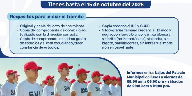 Progreso, Yucatán, a 22 de octubre de 2025.-Hasta el miércoles 15 de octubre, los jóvenes progreseños nacidos en el año 2007, así como anticipados y remisos, podrán tramitar de manera gratuita su Cartilla de Identidad Militar y así cumplir con el Servicio Militar Nacional, informó el alcalde Erik Rihani González.
