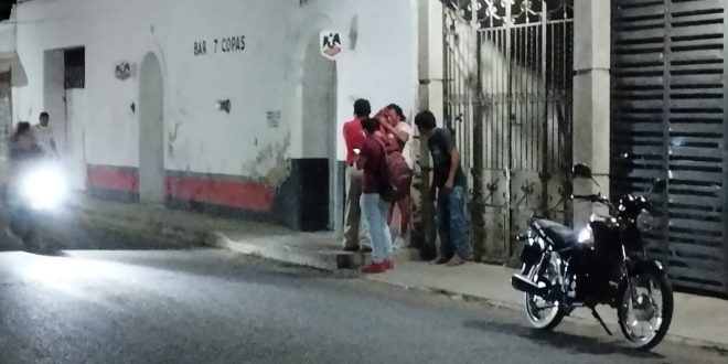 La ‘kinchilebria’ tuvo que ser auxiliada por una amiga y parroquianos en el interior del “Bar 7 copas”, pues la mesera estaba en horas de labor.