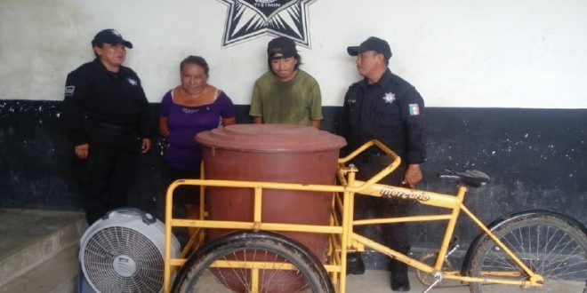 María Esther y Ek Chel fueron trasladados a la base de la corporación municipal con los objetos recuperados, para el deslinde de responsabilidades.