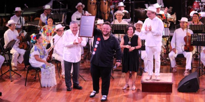 Con el acompañamiento de la Orquesta Típica Yukalpetén (OTY), bajo la batuta del maestro Pedro Carlos Herrera López, el recipiendario deleitó, con su estilo y voz, al público con las canciones “La fuente” de Pastor Cervera, “Quisiera ser golondrina” de Wello Rivas, “Ama” de Luis Demetrio, “Yo sé que volverás” de Luis Pérez Sabido y Armando Manzanero, la cual interpretó a dueto con Alfonso Alquicira, vocalista de la Big Band Jazz de México; el repertorio continuó con “No”, también de Armando Manzanero y cuya interpretación motivó una ovación de pie.