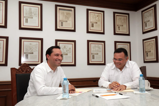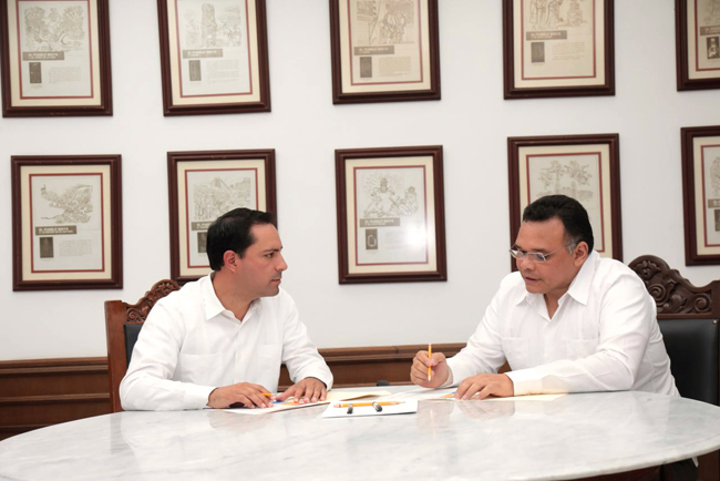 Este día, el Gobernador Rolando Zapata Bello y el mandatario electo, Mauricio Vila Dosal, sostuvieron una reunión de trabajo en el Despacho del titular del Poder Ejecutivo, en el Palacio de Gobierno.