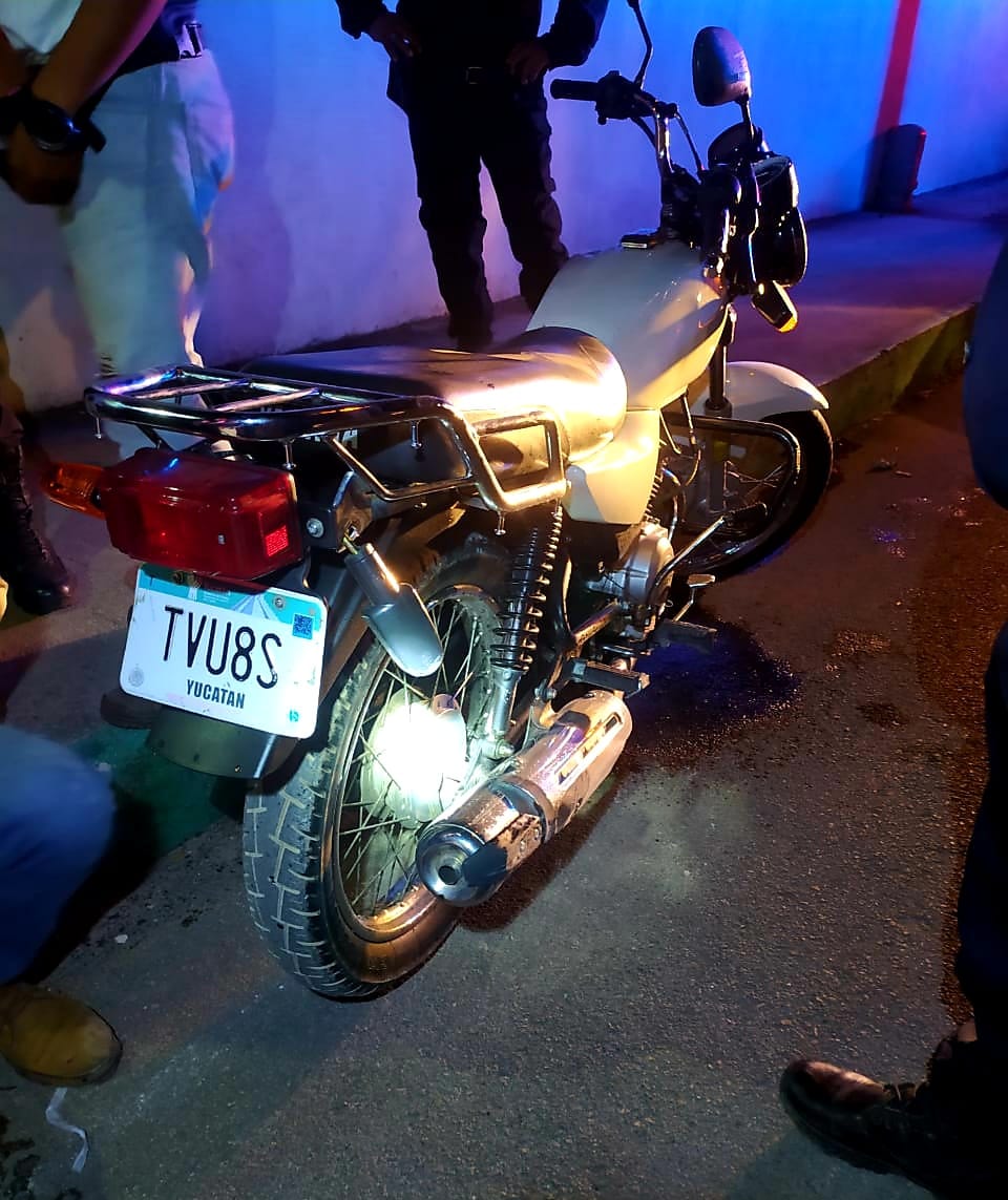 Umán, Yuc., 24 de enero 2021.- Por golpear apenas el embanquetado, Daniel Jesús G.P.,, de 25 años perdió el control de su motocicleta y acabó derrapando la noche ayer en calles del fraccionamiento Itzincab de Umán.