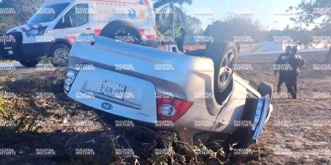 Mérida, Yuc., a 26 de febrero.- Después de salirse de camino en la zona sur del Periférico de Mérida, un auto Focus volcó y quedó totalmente de cabeza en la hondonada central. El guiador, que al parecer estaba ebrio, prefirió escapar, abandonando no sólo su vehículo, sino también a la mujer que le acompañaba.