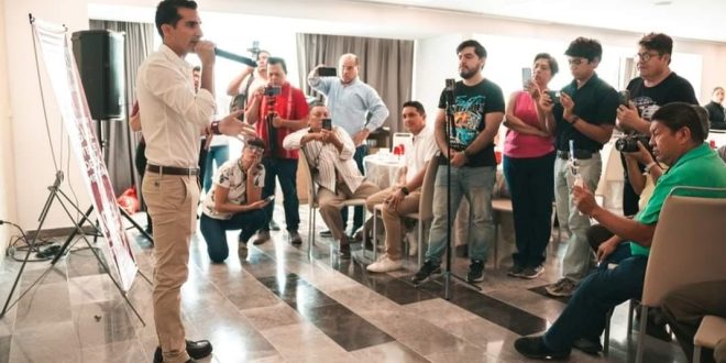 · El abanderado de Morena, PT y PVEM a la alcaldía de Mérida anuncia ante medios de comunicación los cinco ejes que conforman su plataforma de gobierno para el bienestar de la ciudad, luego de recorrer y escuchar las preocupaciones e inquietudes de las y los meridanos.