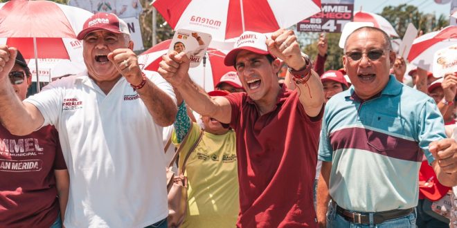 “La victoria del pueblo de Mérida, de Yucatán y de México es un hecho, estamos arriba en las encuestas, pero principalmente en el ánimo de la gente; confiamos en ustedes, porque de la mano del pueblo ganamos la campaña y con sus votos, de la mano del pueblo vamos a ganar la elección, para que juntos, de la mano del pueblo entremos al Palacio Municipal”, recalcó Rommel Pacheco.