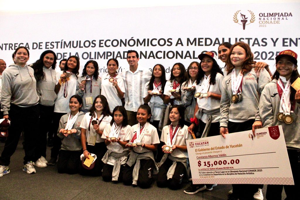 Mérida, Yucatán, a 18 de agosto de 2025.- En reconocimiento al esfuerzo y la disciplina que permitieron poner en alto el nombre de Yucatán durante la Olimpiada Nacional Conade 2025, el Gobernador Joaquín Díaz Mena entregó estímulos económicos a 268 atletas y 91 entrenadores medallistas de esta justa deportiva.