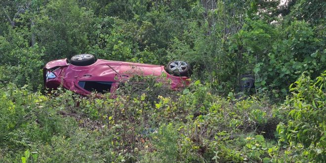 Kinchil, Yuc., 21 de julio.- Una familia originaria de Veracruz, pero avecindada en Mérida, tenía planes de ir dar un rol en el paradisíaco puerto de Celestún a bordo de un Sonic, pero se vieron frustrados al “morder” la cinta asfáltica y salirse de la carretera volcando así en los montes de Kinchil. Incluso la fuerte volcadura se dio a un kilómetro de la tragedia de hace 8 días, de aquel brutal encontronazo entre un camioncito H-100 y una camioneta Xpander que cobro la vida de 5 personas.