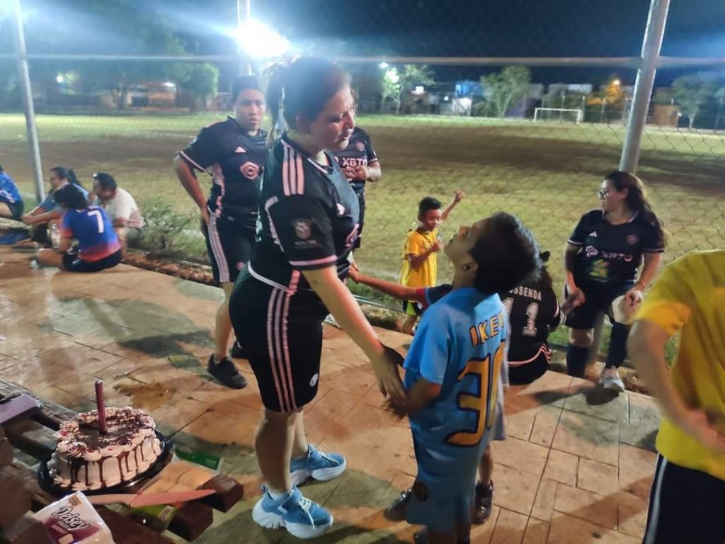 ” El 14 de septiembre hicimos el compromiso de entregarles uniformes para el equipo de mujeres de fútbol Yuca-Tec, hoy le cumpliremos. Aprovechamos a comer el pastel , pero también recordé viejos tiempos cuando jugaba fútbol”, enfatizó.
