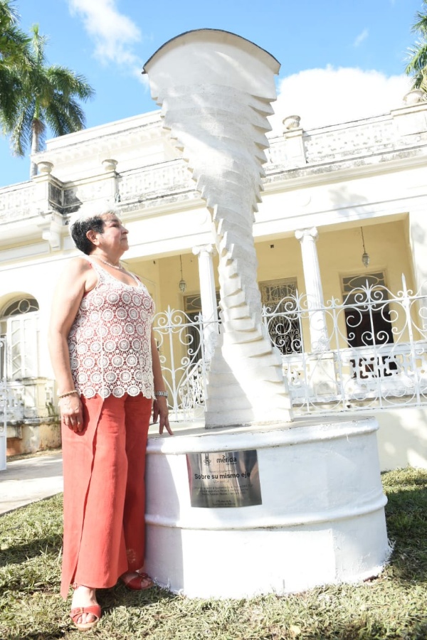 Para Rosario Guillermo las esculturas tienen vida y están hechas para comunicar. Por eso su obra de cerámica “Sobre su mismo eje” estará a partir de hoy a las puertas del Archivo Histórico de Mérida, sobre el Paseo de Montejo, un nuevo regalo de arte que la artista yucateca dona a la Ciudad, en el marco del Mérida Fest.