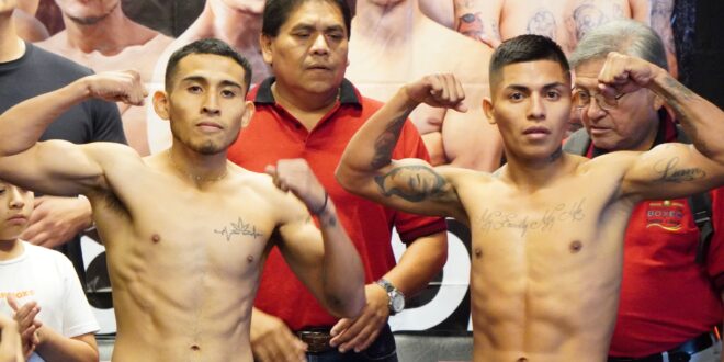 MÉRIDA, Yuc., 19 de diciembre 2025.- Sin problema, los protagonistas de la cartelera ‘Noche de PuroBox’ aprobaron la prueba del pesaje, por lo que ahora se reportan listos para ascender al ring mañana viernes 19 de diciembre en velada presentada por Rosarito Boxing en Mérida.
