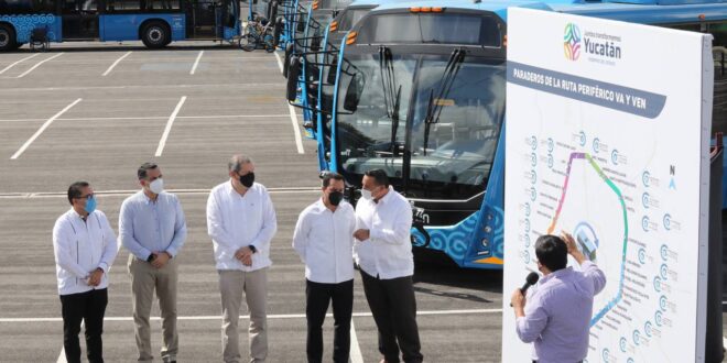 Mérida, Yucatán, 30 de septiembre de 2021.- La nueva ruta periférico de transporte “Va y Ven” entrará en operación a finales de noviembre y el servicio será gratuito hasta el 31 de diciembre para que los ciudadanos conozcan los beneficios y se adapten a este nuevo trayecto, por lo que el cobro iniciará en el mes de enero de 2022, anunció el Gobernador Mauricio Vila Dosal.