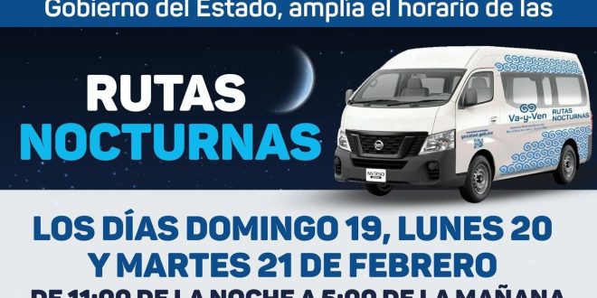 El Instituto de Movilidad y Desarrollo Urbano Territorial (Imdut) recordó que estos trayectos nocturnos están disponibles de miércoles a sábado, no obstante, para responder a la demanda que generarán las fiestas carnestolendas en la capital yucateca, funcionarán el Domingo de Bachata, el Lunes Regional y el Martes de Batalla de las Flores.