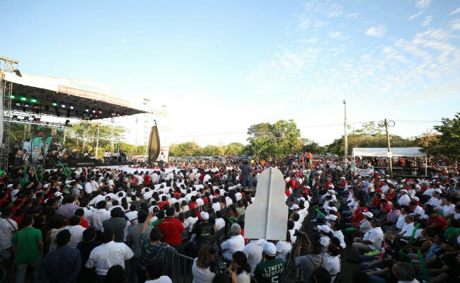 En un ambiente de fiesta, las inmediaciones del recinto ferial de X’matkuil se vistieron de verde, blanco y rojo, con la presencia de los candidatos a las 106 alcaldías y 15 diputaciones locales, así como los abanderados al Senado y a legisladores federales.