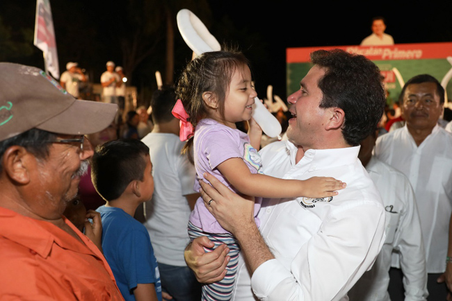 Tras encabezar una alegre caminata por las principales calles de Teya, en la que pudo externarle su reconocimiento a cada mamá, Sahuí Rivero recordó que entre sus propuestas se encuentra la de ampliar la dotación de paquetes de útiles escolares a alumnos de preescolar y secundaria.