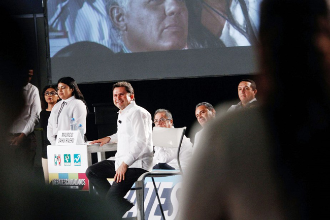 También estuvieron presentes los candidatos de Morena, PES y PT, Joaquín Díaz Mena; PRD, Jorge Zavala Castro; y PAN y MC, Mauricio Vila Dosal.