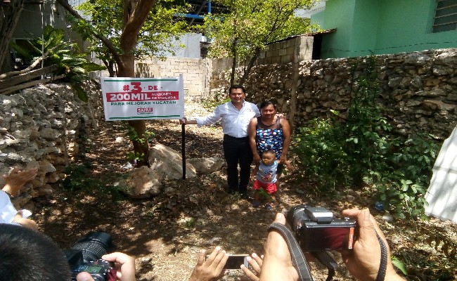 Al visitar a esa familia de la colonia Nueva Pacabtún, el candidato del PRI, PVEM y Panal a la gubernatura, Mauricio Sahuí Rivero, ratificó su compromiso de impulsar por lo menos 200 mil acciones de vivienda para que más familias mejoren su calidad de vida.