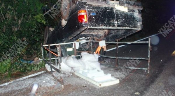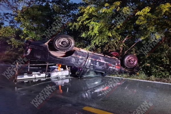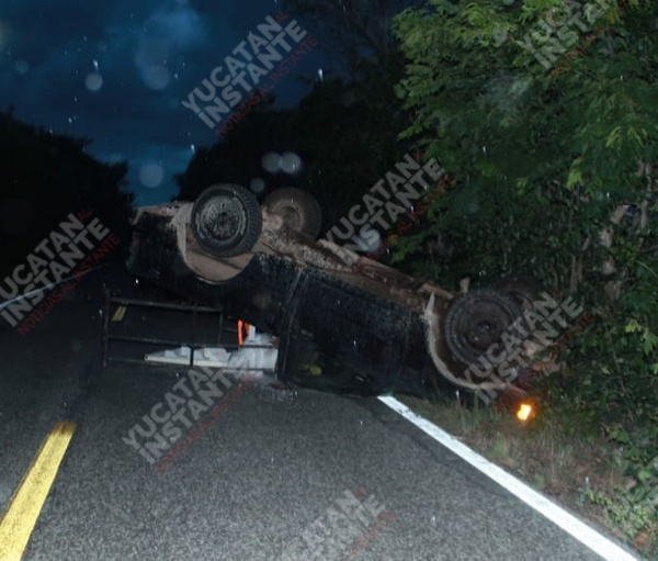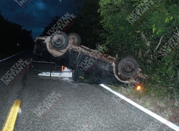 Celestún, Yucatán, 11 de agosto 2020.- Una volcadura “fantasmal” se suscitó anoche en la vía federal que une este puerto con el pueblo de Kinchil, donde el guiador de una camioneta abandonó su unidad, poco antes de las 7 de la noche de ayer.