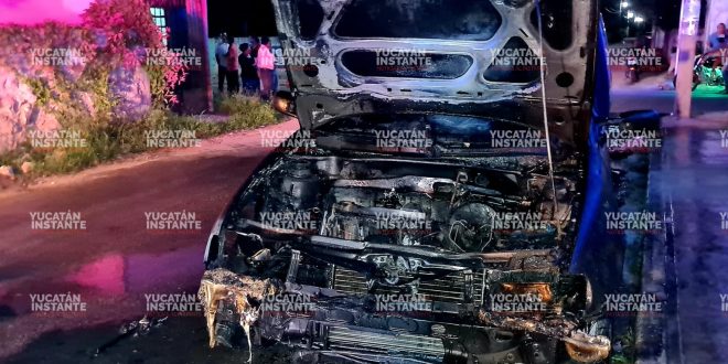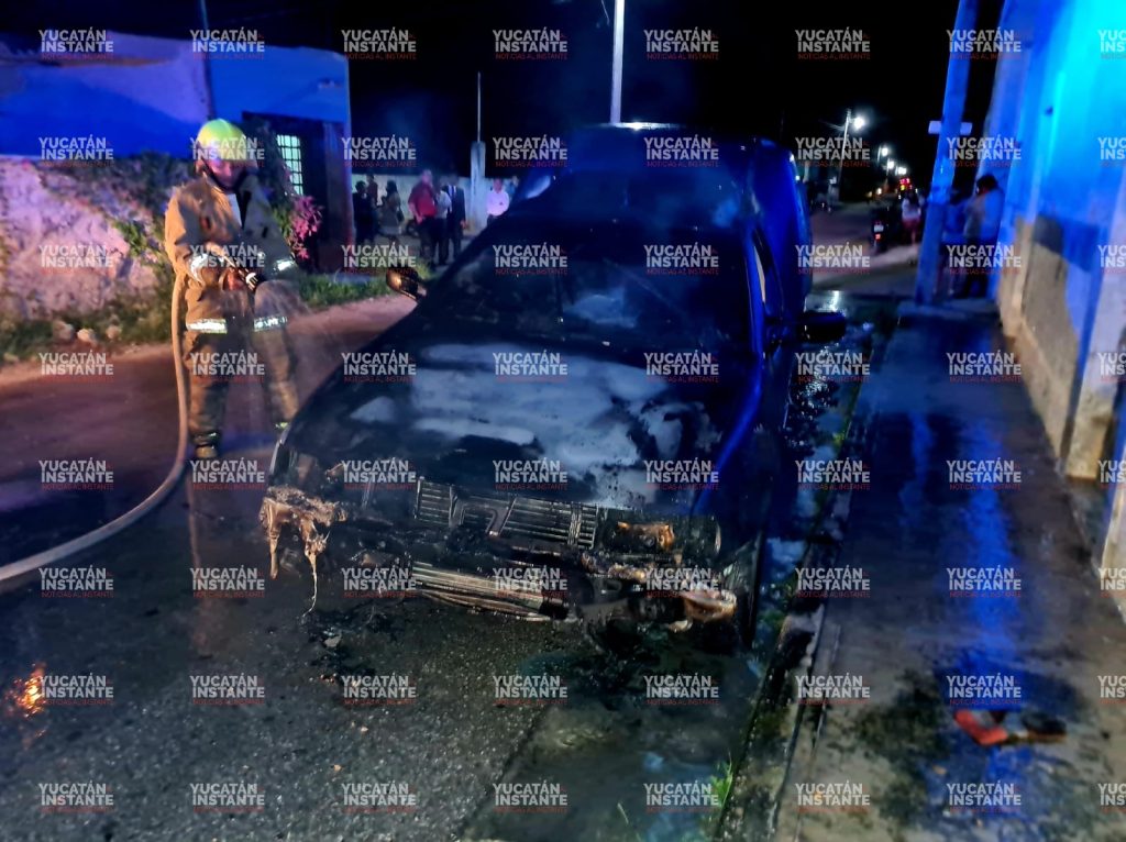 Kinchil, Yuc., a 04 de diciembre 2022.- Vaya susto de una familia al ver las primeras lenguas de fuego salir del capirote del vehículo en el que viajaban sobre la calle 18 con 23 de Kinchil, la noche de ayer.