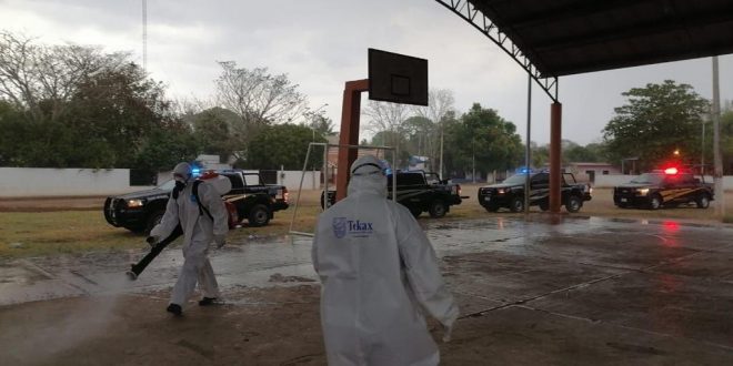 Estuvo estuvo a cargo de elementos de la policía municipal en coordinación con varias unidades de la Secretaría de Seguridad Pública del Estado de Yucatán (SSP) donde se realizó la sanitización de estos espacios públicos, así como de varias calles de esta comunidad.