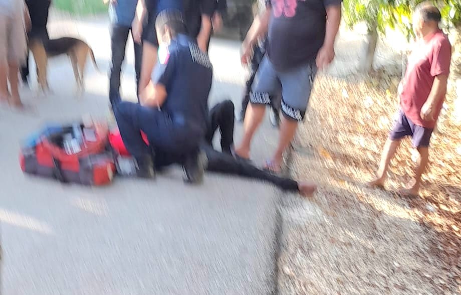 En este hecho los Técnicos Urgencias Médicas de la ambulancia Y-35 de la SSP, lo empaquetaron para trasladarlo al IMSS en Umán.