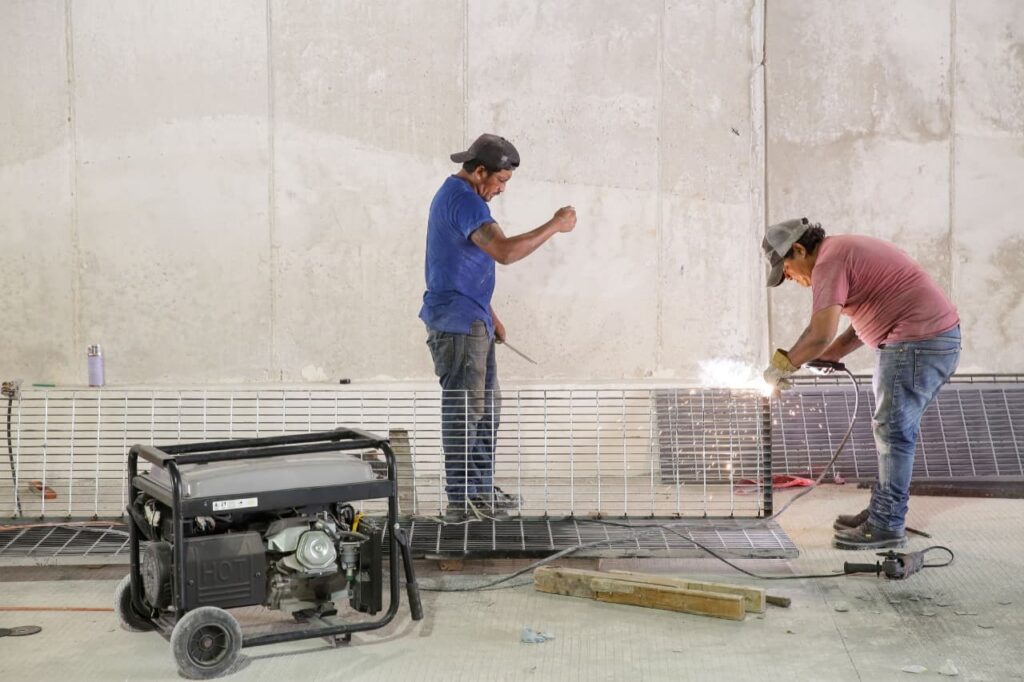Además, se colocaron las rejillas de drenaje que se retiraron al inicio de la rehabilitación del distribuidor vial, que fueron resguardadas y que les dieron mantenimiento, antes de instalarlas de nueva cuenta.