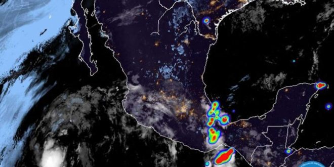 En el Pacífico Sur el cielo permanecerá nublado con lluvias puntuales intensas por la noche y madrugada del viernes en Chiapas, así como lluvias muy fuertes en Oaxaca y Guerrero, las cuales se acompañarán de descargas eléctricas y posibles granizadas. Ambiente caluroso y viento variable de 15 a 30 km/h con rachas de 50 km/h.