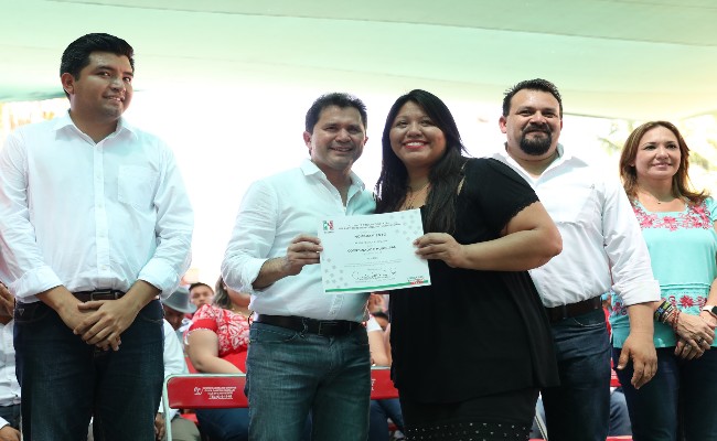 Cuzamá, Yucatán.- Con la mira puesta en el banderazo de inicio de actividades de campaña, militantes priistas recibieron el nombramiento que los acredita como estructura de promoción al voto, acto que atestiguó el candidato del PRI al Gobierno del Estado, Mauricio Sahuí Rivero.