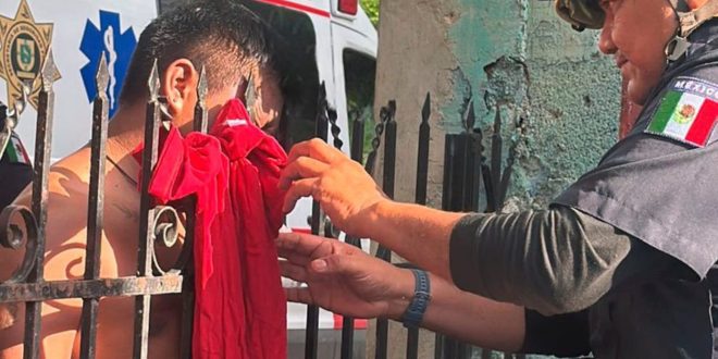 KANASÍN, Yuc., 19 de julio 2025.- Un sujeto en estado de ebriedad, sufrió grave accidente cuando resbaló y cayó sobre su reja clavándose en su pecho. El suceso ocurrió la tarde de hoy, en la calle 40 con 71 de la colonia Xelpac de este municipio.