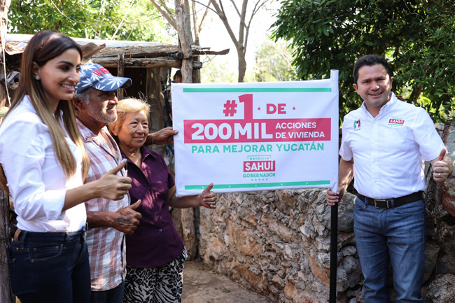 En el predio de Casimira Navarrete Pacheco y su esposo, Carlos Daniel Caamal, vecinos de Mulchechén, Sahuí Rivero presentó su segunda propuesta de campaña la cual constará en dotar a más familias, con estufas con chimenea, baños econologicos, pisos firmes así como cuartos adicionales.