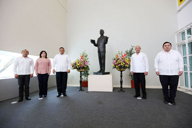 Después del acto protocolario, Zapata Bello, acompañado por autoridades universitarias, depositó una ofrenda floral y realizó una guardia de honor ante la efigie de Felipe Carrillo Puerto, quien impulsó la creación de la Universidad en 1922.