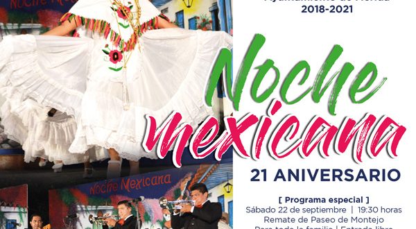 En esta ocasión la “Noche Mexicana” comenzará a las 19:30 horas con la solista Dulce Amira para luego dar paso al espectáculo “México Mágico”. Durante una hora el folclor de varios estados estará presente en las estampas que han preparado los ballets folclóricos, comenzando con “Aires del Mayab” (Yucatán), “La bamba” (Veracruz), “El caballito” (Tamaulipas), “Jesusita en Chihuahua”, el Popurrí Jarabe Nayarit y el “Son de la Negra” y el “Jarabe Tapatío”, bailes populares de Jalisco. El Mariachi Real de Mi Tierra también tendrá intervenciones individuales y cerrará esta parte del festejo Reyna Adriana, quien se ha presentado desde los inicios del programa, entonando para este aniversario el tema “México en la piel”.