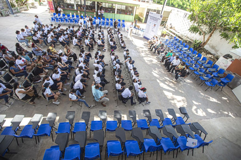 La primera sede fue el plantel de la “Rafael Moguel Gamboa”, donde también recibió lo propio la escuela “José Vasconcelos”, ambas por un monto de 225, 109 mil pesos en beneficio de 1,036 alumnas y alumnos. El segundo punto fue la escuela “Benito Juárez García”, allí también se apoyó a la primaria “Florinda Batista Espínola”, las dos por una inversión de 286, 901 mil pesos con el fin de impactar positivamente a 1,064 estudiantes.