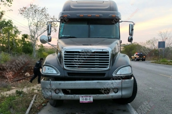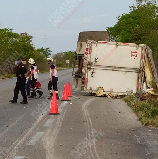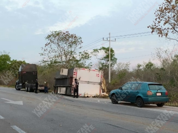 Se desprende caja de tráiler y vuelca en la Mérida-Tetiz