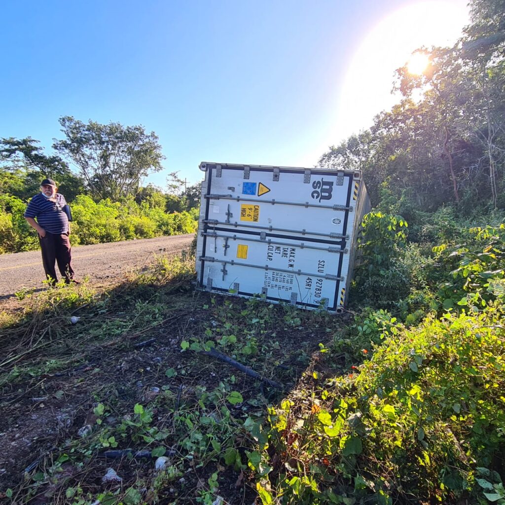 El conductor de la mole de acero de la empresa Transportes Álvarez dijo que llevaba cerca de 30 toneladas de pulpo con destino a Progreso, pero hasta eso el contenedor metálico no se rompió al volcar poco antes de las 7 de la mañana de este lunes.