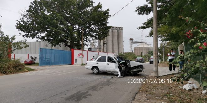 MÉRIDA, Yuc., 27 de enero 2023.- Con el frente completamente destruido terminó un automóvil tipo Tsuru después de colisionar con un poste en calles de la Ciudad Industrial, este jueves.