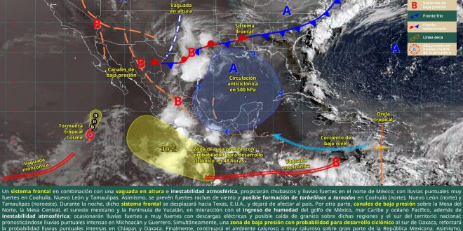 La combinación del ingreso de aire marítimo tropical, un canal de bajas presiones y el fuerte calentamiento diurno favorecerá la formación de lluvias vespertinas con actividad eléctrica en varias zonas del estado. Estas condiciones también se extenderán al vecino estado de Campeche, mientras que en Quintana Roo se esperan lluvias ligeras aisladas.