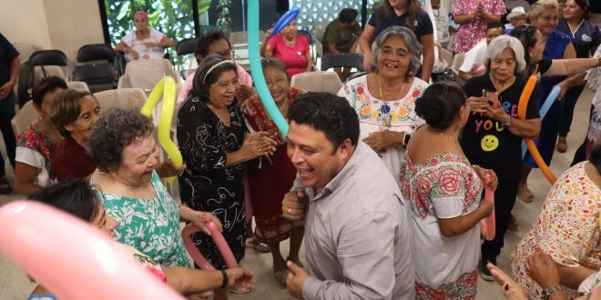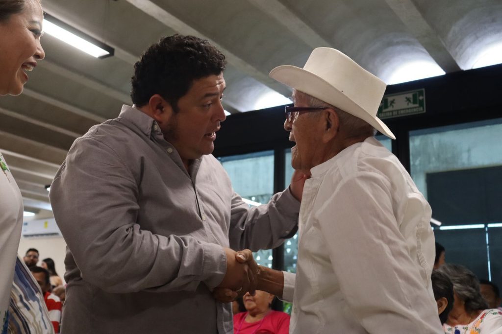 Kanasín, Yucatán a 28 de agosto 2025.- Pese a su edad, 96 años bien cumplidos, don Antonio Cutz Cutz bailó al compás de ‘Paleto’, sin importarle, como él mismo dijo, el dolor en su pierna derecha; y aunque tuvo que sentarse porque ya no la aguantaba, él disfrutó del Día de los abuelitos, cuyo festejo se realizó en la Casa del Adulto Mayor, que se ubica en el fraccionamiento La Finca.