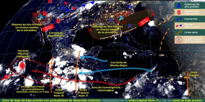 CIUDAD DE MÉXICO.- El huracán “Felicia” se formó el jueves en el este del océano Pacífico, lejos de la costa mexicana, por lo que no presenta amenaza en tierra, dijeron los meteorólogos.