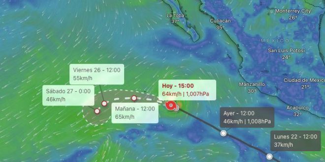 De acuerdo con las proyecciones, la tormenta Bud no representa peligro para México, ya que se encuentra lejos de las costas del país y se prevé que para esta noche o mañana temprano haga un giro hacia el oeste y para el viernes se mueva hacia el suroeste.