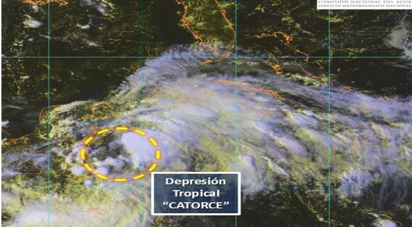 Esta tarde se ha generado la Depresión Tropical 14 frente a las costas de Quintana Roo, sistema que registra un desplazamiento hacia el noroeste, por lo que se recomienda a la población mantenerse muy al pendiente de los avisos oficiales, informa el Centro Hidrometeorológico Regional de Mérida de la Comisión Nacional del Agua.
