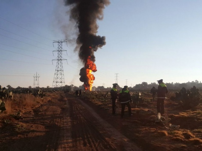 Una fuga en un ducto de Pemex provocó un incendio a la altura del kilómetro 177+600, en el paraje conocido como Soapayuca, municipio de Axapusco.